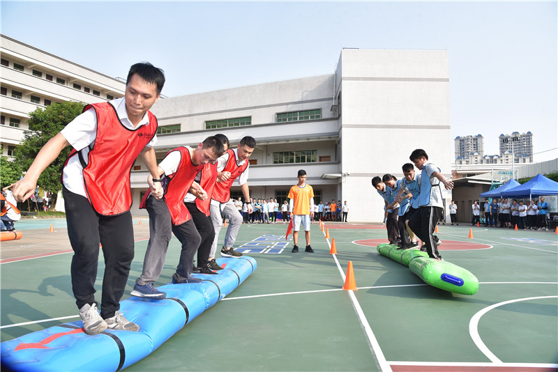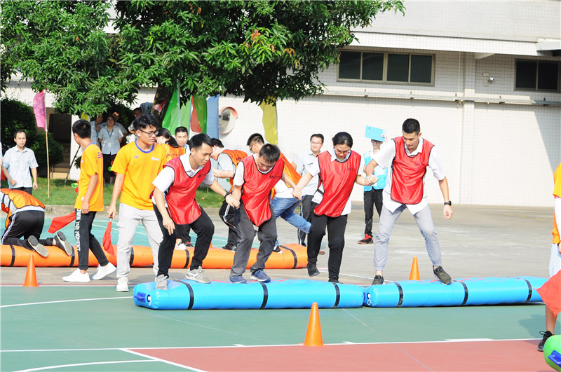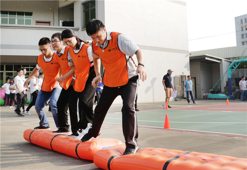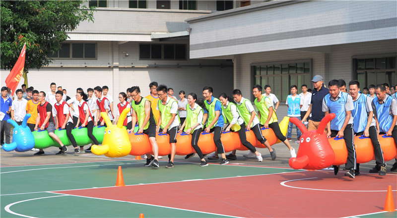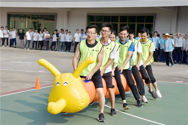 接下來進(jìn)行緊張刺激的趣味項目比賽,趣味項目由4個項目組成,分別為毛蟲競速、同舟共濟(jì)、珠行萬里、蜈蚣爬行。